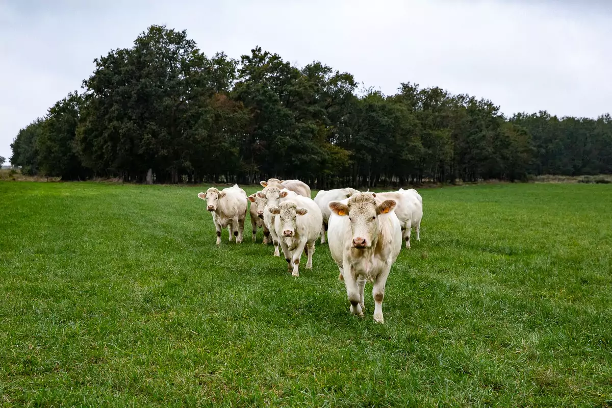 La ferme est autosuffisante et Christophe nourrie ses bêtes avec ce qu’il récolte de ses terres. Principalement nourries à l’herbe, Christophe essaie de laisser ses vaches brouter à l'extérieur le plus longtemps possible, tant que la météo le permet. Le reste de l'année, elles sont confortablement installées dans une belle étable à la lumière naturelle ! Cela fait 12 ans que Christophe travaille étroitement avec un nutritionniste. Ensemble, ils cherchent à définir le régime alimentaire idéal avec des produits naturels issus de la ferme : sans additifs, antibiotiques ni hormones de croissance !