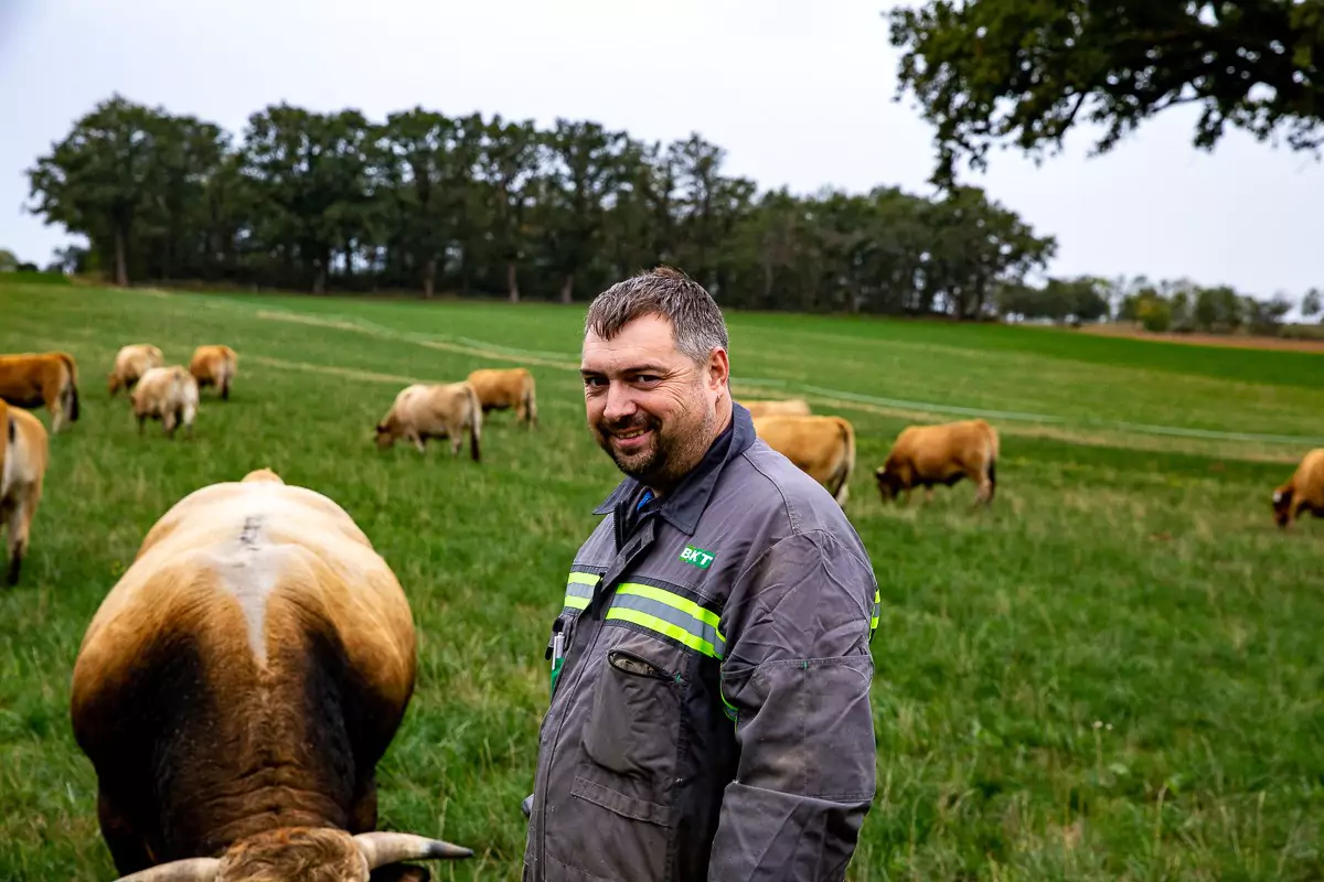 Le matin auprès des bêtes et l'après-midi au travail des champs sur son tracteur : voilà comment est rythmé sa journée type. Un grand passionné, ce qu’il préfère c’est passer du temps à chouchouter ses vaches, dans le pré ou dans l'étable. Comme apparentées à ses propres filles, il répète “Viens ma fille, viens” lorsqu’il les appelle. La petite chouchoute de la famille s’appelle Doudoune, même les jeunes enfants lui grimpent sur le dos et s’amusent avec elle.