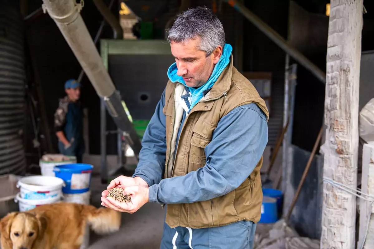 Sébastien élève la charolaise et il aime tout chez elle : sa facilité d'élevage et de vêlage, ses qualités maternelles mais aussi la qualité et le goût incomparable de sa viande. Ils les nourrit principalement d’herbe du pâturage, de foin, de légumes et de céréales : que des produits naturels de la ferme ! L’objectif est d'être un plus proche de l’autonomie complète, pour les protéines végétales nécessaires à l’engraissement des vaches, Sébastien s’est associé à une entreprise céréalière familiale, comme la sienne, auprès de laquelle il se fourni.