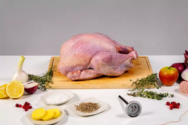 Deze kalkoen heeft royale hoeveelheden smaakvol borst- en donker vlees. Bereid hem naar eigen smaak met onze stap-voor-stap instructies. Voeg eventueel een lekkere zelfgemaakte vulling en kruiden toe om de smaak te perfectioneren. Bij jouw bestelling krijgt je van ons een gratis vleesthermometer, zodat je de kalkoen perfect kunt bereiden.