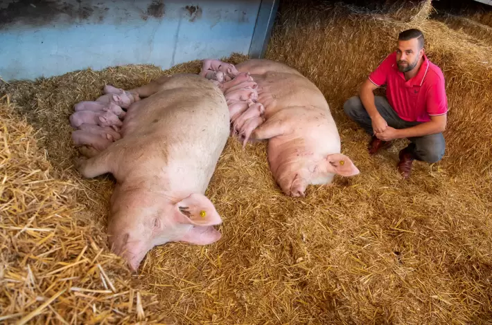 Landras x Pietrain is een kruising van onze boer Coen Veldhorst. De dieren zijn gekruist om het perfect outdoor varken te creëren.